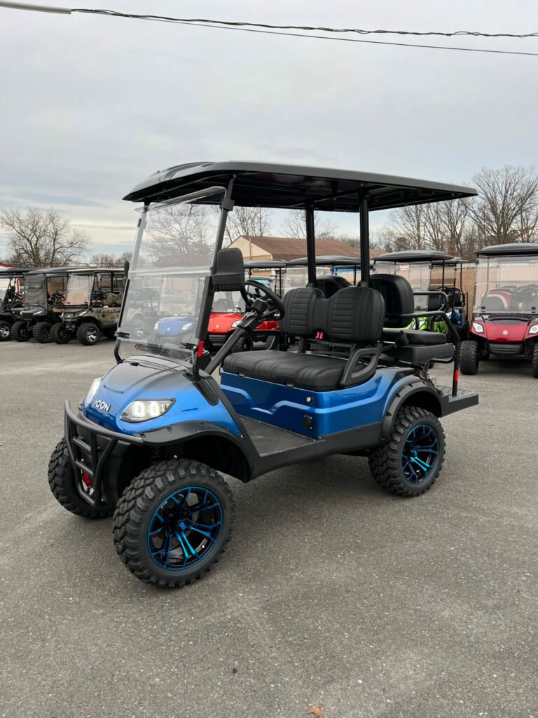 - Custom 14″ blue/black wheel package with 23″ SBR all terrain DOT tires ($1,195 value)
