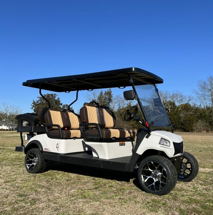 2025 New Honor LSV 3″ lifted 4+2 G1 Pearl White 48 volt AC electric Lithium powered aluminum Low Speed Vehicle street legal cart, made in America includes :